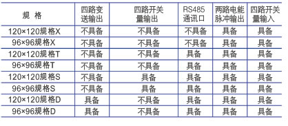 儀表有多種擴展功能模塊可供選擇: 4路模擬量(0-20mA/4-20mA)輸出可實現電量的變送輸出功能;4路開關量輸入和4路開關量輸出可實現本地或遠程的開關信號監測和輸出功能, 一路RS485通訊接口, 采用MODBUS-RTU通訊協議,實現與PLC、工控計算機等通訊組網。用戶可根據實際需求選擇最為經濟的功能配置。